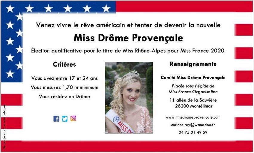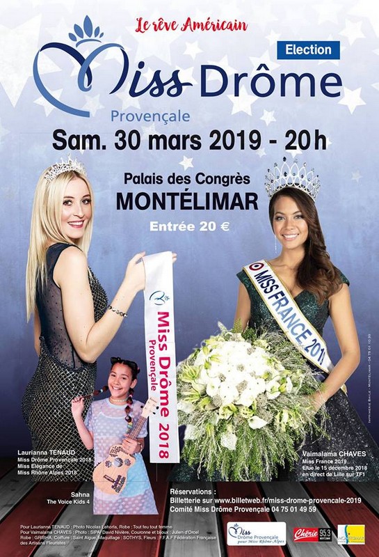 Miss Drôme Provençale 2019 : Nina Milutinovic 1ère dauphine : Romane Farcy 2ème dauphine : Lyssandre Bonnifacy 3ème dauphine : Lou Giordano 4ème dauphine : Hillary Demol Prix des nougatiers : Johanna Reynaud Prix du comité : Coraline Chalon